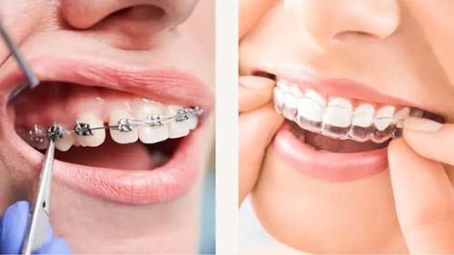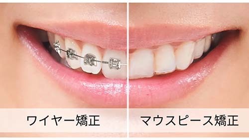 この写真のように金属を使うワイヤー矯正に比べると、マウスピース矯正は目立たないので、他人の目が気になりません。