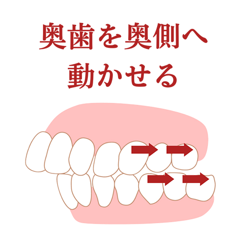 スペース確保が必要な際、当院がご提供するインビザラインでは、奥歯を後方に移動させることで対処しています。